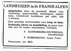 ca. 1957 ad in which my parents offer their agency in the acquisition of French Alps 'estates' (landhuizen)