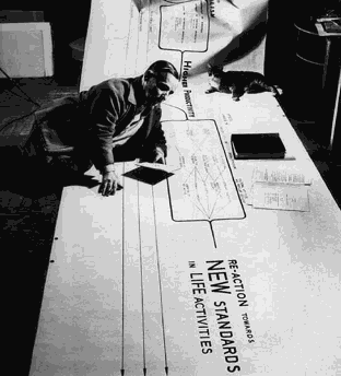 artist attention: Friedrich Kiesler and cat on Correalism table