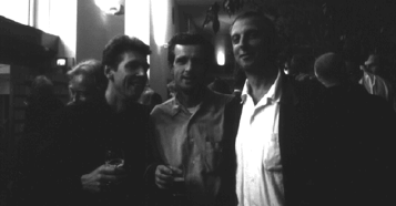 Babs Haenen sent us this pic, that she shot September 4 (see there), at her opening... we're history at the Amsterdam Stedelijk Museum! Left to right, for those youngsters among my audience: Ton Mars, Jouke Kleerebezem, Hans Scholten. For more detail: behind Ton's right shoulder is (Leendert) Van Lagenstein, once director of famous Corps de Garde, when the rest of us were getting ready to start notorious De Zaak in 1979. Stay posted!